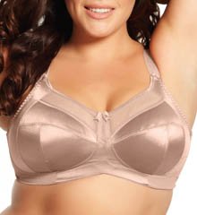 No wire, soft cup bra with side boning. 3-part seamed cups offer great support. Ultra-sheer mesh along bustline. Bow accent on front center. Sheer mesh wings. Fully adjustable stretch straps. Close-set straps stay in place. Designed to fit and flatter fuller figures. 3 column, 3 row hook and eye back closure. Stretch nylon blend with satin finish. Goddess Style GD6093